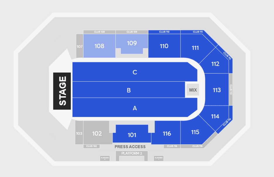 You will receive tickets for one of these sections:
